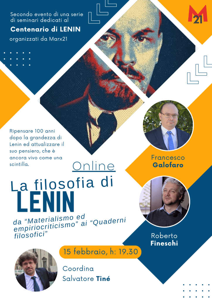 il 29 febbraio è programmato un terzo incontro su Lenin e l’Oriente. Il risveglio dei popoli oppressi, con Salvatore Cangemi e Salvatore Tinè. Coordina Francesco Maringiò