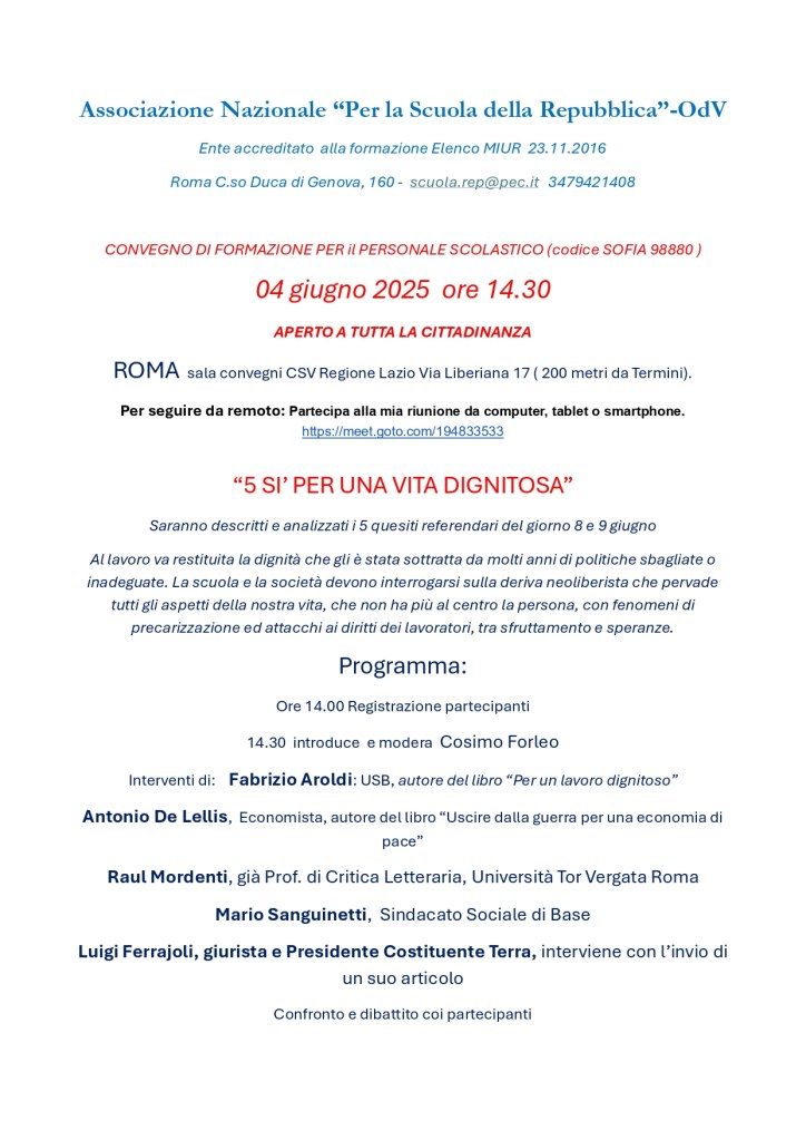 Ci permettiamo di segnalare C.F. dell’Associazione Per la Scuola della Repubblica odv per il 5 per mille: 91206990375.