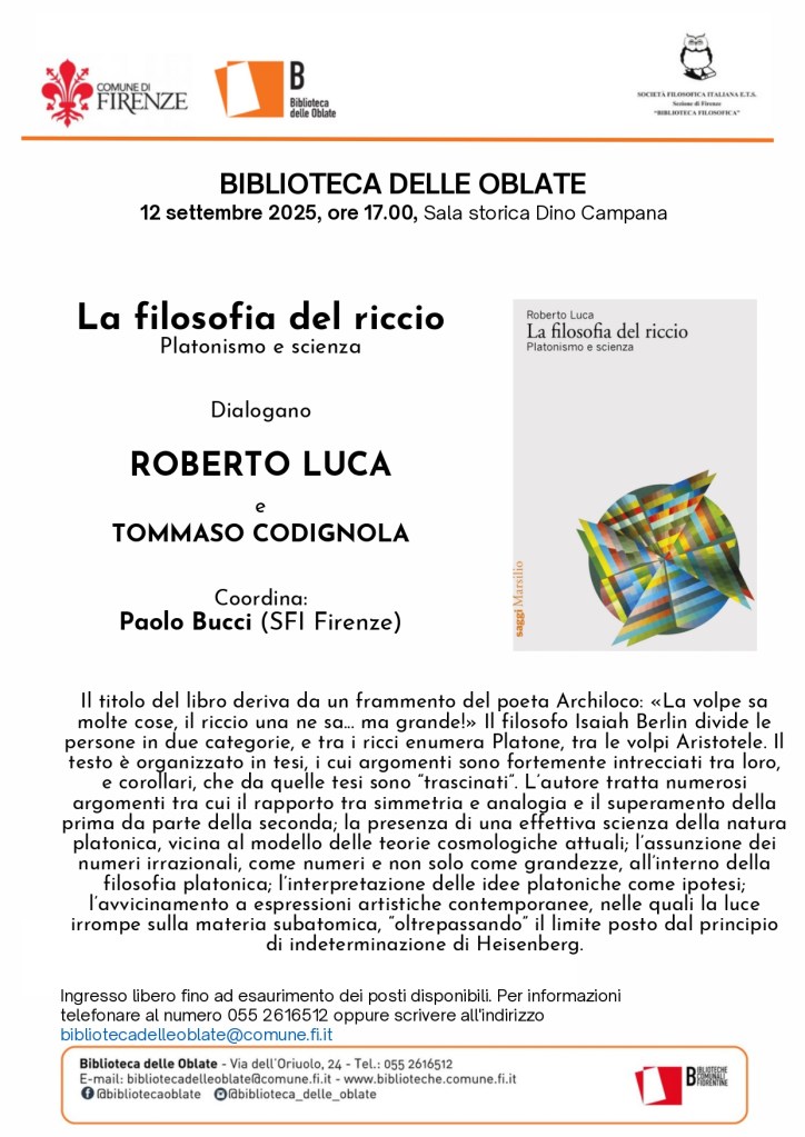 Segnaliamo un interessante seminario organizzato dalla SFI Firenze il 12 settembre 2025 alle ore 17.00 presso BIBLIOTECA DELLE OBLATE, Sala storica Dino Campana.