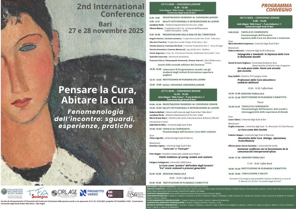Segnaliamo l’appuntamento con la seconda edizione del convegno “Pensare la cura, abitare la cura”, del quale la Sezione barese della Società Filosofica Italiana è partner, che si svolgerà a Bari nei giorni 27 e 28 novembre p.v.
