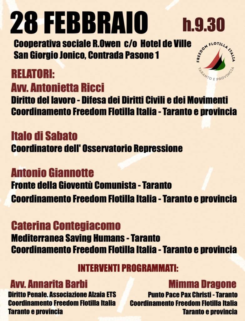 Avv. Antonietta Ricci, diritto del lavoro, Difesa dei diritti civili e dei movimenti, Coordinamento Freedom Flotilla Italia – Taranto e provincia