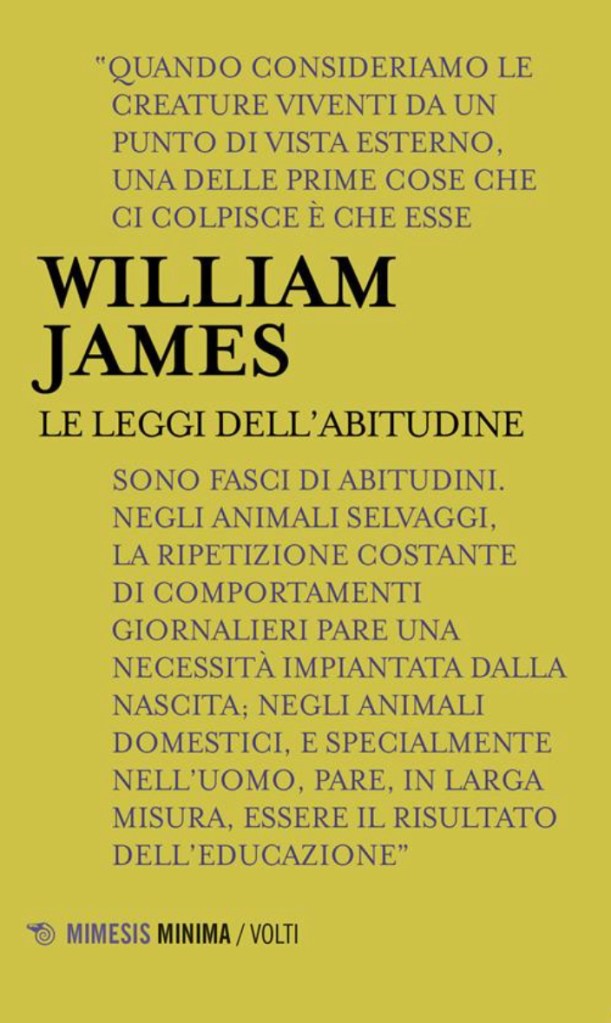[1] William James, Le Leggi dell’Abitudine, Mimesis Minima/Volti, Milano 2019, p. 49.